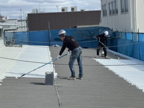 暑い時期に屋根の塗装は、地獄です!屋根に落ちた汗が瞬時に蒸発(ジュ~)素手でさわるなんてもってのほか火傷することも・・・。影のない屋根では、上からは、強烈な直射日光、下からは、熱々の熱気で塗装作業は、1時間持ちません。特に金属系鉄板屋根(トタン・折板・瓦棒)などは、まるで熱せられたフライパンのよう(油ひいら目玉焼きできるかも)よく冗談で言ってました。20年ほど前でした初めて遮熱塗料を屋根に塗った時、驚き感動しました!塗った箇所を素手で触ると全然熱くないんです。冷たくすら感じましす。作業中、太陽の日差しはたまらなく暑くしんどいですが、下から(屋根)の熱々の熱気が全く感じないのです本当に驚きです!と同時に、〔だから室内の温度上昇も軽減される訳なんだ〕と実感しました。実際に塗ってる私達が言ってるんです間違いありません!